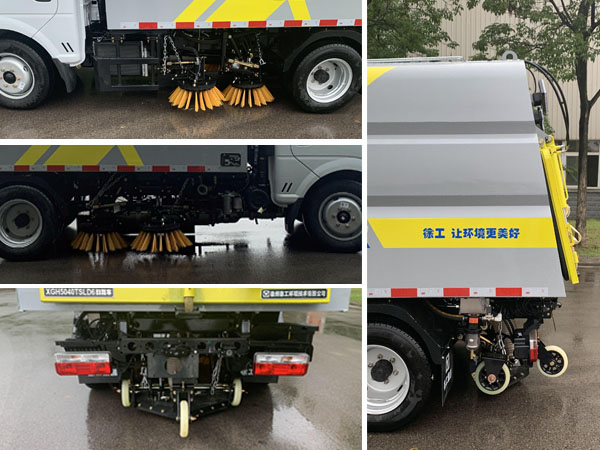 ABS型号:APG3550500A,ABS/ASR-12V-4S/4M;ABS生产企业:浙江亚太机电股份有限公司,襄阳东风隆诚机械有限责任公司;选装限速装置,限速80km/h;仅选用2800mm轴距;选装无橡胶挡泥板;随底盘选装后视镜;侧防护装置为护栏和专用装置组成,护栏材料为Q235B,后防护装置为专用装置替代,离地高度为120mm;该车主要用于道路清扫,专用装置为箱体、清扫装置、吸尘装置组成. |