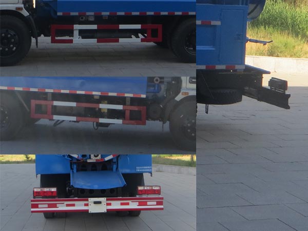 选装新造型前面罩,前保险杠,前组合灯具。选装外观。罐体有效容积为5.97立方米,罐体外形尺寸为 : 直段长3700mm,直径1500mm。侧防护采用冷弯型钢/Q235B,螺栓连接。后防护采用冷弯型钢/Q235B,焊接连接。后防护截面高度尺寸220mm, 截面宽度尺寸50mm,下边缘离地高度470mm。车辆长与前悬一一对应。专用装置主要有罐体,管道系统,高压泵,真空泵等,用于清洗吸污作业。ABS系统生产厂家,型号 :襄阳东风隆诚机械有限责任公司,ABS/ASR-24V-4S/4M. |