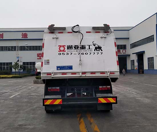 该车装备有垃圾,尘土收集容器及扫刷等专用装置,具有清扫,收集垃圾等污物功能;仅选用5000mm轴距;选装弧形箱体;选装外观喷涂;选装中置四扫刷,后置宽吸盘;侧后防护装置材料均为:Q235,侧后防护装置与车架连接方式均为螺栓连接,后防护装置截面尺寸为:240?0mm,离地高度450mm;ABS系统生产厂家/型号:焦作博瑞克控制技术有限公司/J ABS. |