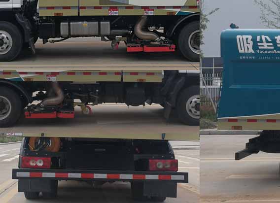 选装箱体外观,选装后部带垃圾斗装置;仅采用3800mm轴距;侧防护由吸盘,油箱等专用装置代替;后防护材料Q235,螺栓连接,后防护截面高度尺寸120mm,截面宽度尺寸60mm,下边缘离地高度410mm;ABS系统控制器型号/生产企业:ABS-E/威伯科汽车控制系统(中国)有限公司,ABS-VI-E/广州瑞立科密汽车电子股份有限公司;专用装置主要由水箱,风机,吸盘组成,用于路面吸尘作业. |