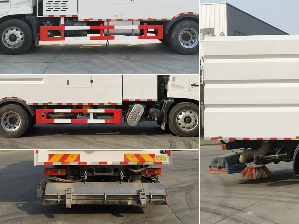 主要专用装置为箱体和吸盘组成,主要用于路面吸尘作业.选装排气后处理安装位置;随底盘选装前面罩,前保险杠,前组合灯具;选装侧面及后部样式.侧防护材质为Q235B,与车辆连接方式为螺栓连接;后防护由专用装置代替,离地高度为300mm.该车仅选用5000轴距.ABS型号/生产厂家:3631010-C2000/东科克诺尔商用车制动系统(十堰)有限公司,ABS 8/东科克诺尔商用车制动系统(十堰)有限公司,4460046450/威伯科汽车控制系统(中国)有限公司;该车型可选择ETC装置.该车装备行驶记录仪. |