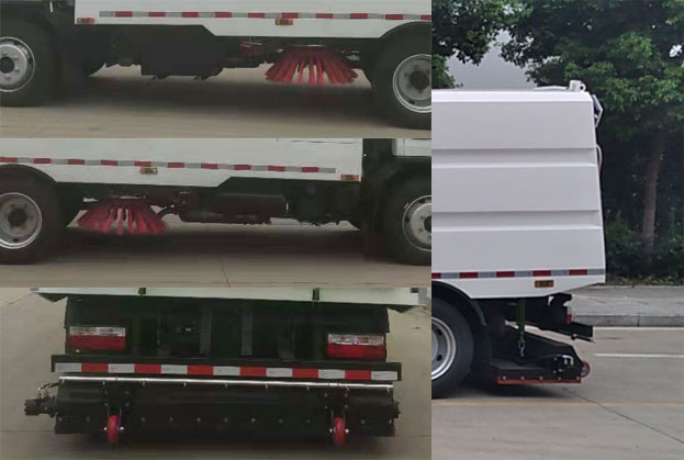 主要专用装置为箱体,吸盘和风机,用于路面吸尘作业;选装吸盘中置;侧防护由专用装置替代;后下部防护装置,材料:Q235,连接方式: 螺栓连接,断面尺寸(宽赘?:50?00(mm),离地高度490mm;ABS及其控制器型号为:ABS/ASR-24V-4S/4M,厂家:襄阳东风隆诚机械有限责任公司;随底盘选装驾驶室;仅采用底盘3800mm轴距. |