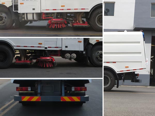 车辆主要装有垃圾箱、除尘装置和吸尘装置,用以城市道路、厂(场)区、高架桥、机场、码头、隧道等路面的吸尘作业.装备限速装置,限速89km/h.仅选用4500mm轴距.随底盘选装宽体保险杠脚踏板,选装前围和灯具.选装新式吸口.选装不同型号的作业指示灯.ABS系统生产厂家:长春瑞立科密汽车电子有限公司,型号:CM4XL.车辆侧面防护装置由除尘装置和吸尘装置代替.后下部防护装置的材料材质为Q235钢,连接方式为焊接,断面尺寸(mm)为80?60,最大离地高度为485mm. |