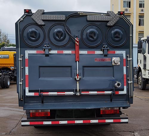 随底盘选装驾驶室;选装吸盘中置和单扫刷及无扫刷结构,选装后部结构,选装厢体外观。侧面防护装置由360度旋转洗扫装置代替;后防护采用Q235B,螺栓连接,后防护截面高度尺寸100mm,截面宽度尺寸50mm,下边缘离地高度400mm。车长/轴距/后悬对应关系为:6250/3308/1887,5550/2950/1545,5300/2700/1545。ABS型号/厂家:ABS/ASR-12V-4S/4M/襄阳东风隆诚机械有限责任公司。该车主要用于城市道路清洁,主要专用装置为水箱,风机,扫盘。 |