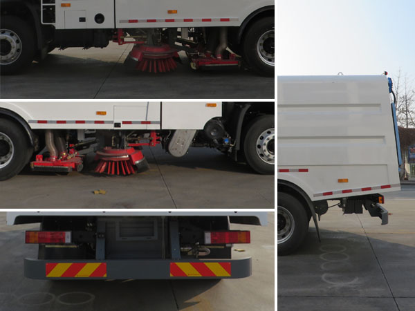 车辆主要装有垃圾箱、五级除尘装置和吸尘装置,用以城市道路、厂(场)区、高架桥、机场、码头、隧道等路面的吸尘作业.随底盘选装限速装置,限速89.选装不同外形尺寸的驾驶室.选装无车门裙板.选装不同结构的车门裙板.选装踏步结构.选装驾驶室卧铺侧窗装饰板.选装前雾灯.选装前下视镜.选装与车身颜色相同的前保险杠.驾驶室前脸扰流罩为选装件.选装驾驶室顶部装饰灯.选装后视镜.选装驾驶室前面罩.选装前保险杠及前部灯具.选装尿素罐样式.选装后处理结构.选装后处理隔热罩.选装后部灯具.选装不同型号的作业指示灯.选装新式车辆外部标识牌.选装气瓶位置.选装新式吸口.选装前罩体.选装新式扫刷.选装不带清扫装置.仅选用4500mm和4700mm轴距,外形尺寸长/轴距/前悬(mm)对应关系为:7995/4500/1400,8025/4500/1430,8195/4700/1400,8225/4700/1430.ABS型号/生产厂家:3631010-C2000/东科克诺尔商用车制动系统(十堰)有限公司,ABS 8/东科克诺尔商用车制动系统(十堰)有限公司,4460046450/威伯科汽车控制系统(中国)有限公司,J ABS/焦作博瑞克控制技术有限公司.车辆侧面防护装置由专用清扫装置和吸尘装置代替.选装不带清扫装置时,安装侧面防护装置,材料材质为铝合金,连接方式为螺栓连接.后下部防护装置的材料材质为Q235钢,连接方式为螺栓连接,断面尺寸(mm)为65?85,最大离地高度为480mm. |