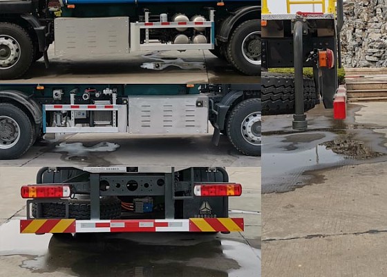 | 储能装置种类/生产企业:磷酸铁锂蓄电池/宁德时代新能源科技股份有限公司;驱动电机功率为峰值功率。运输介质为:水,介质密度:1000千克/立方米。罐体总容量:9.55立方米,罐体有效容积:9.1立方米,罐体外形尺寸(长壮ぶ嶙短轴)(mm): 4800?000?250。侧防护装置材质为铝合金,后下部防护装置材质为Q235,连接方式均为螺栓连接。后下部防护装置的截面尺寸为(宽赘?:80mm?20mm,离地高度为:480mm。专用装置为水泵、水罐、喷枪,主要用于喷洒路面,起除尘和降温作用。ABS系统型号4460046300,生产企业威伯科(上海)管理有限公司。电机型号为TZ230XS-ZQRM100V07/TZ230XS-ZQRM130V08,生产企业为中国重型汽车集团有限公司,额定功率(kw)为50/70.峰值功率(kw)为100/130.后悬2130mm对应离去角为12?后悬2630mm对应离去角10?车长和前后悬的关系为:8060=1430+4500+2130,8560=1430+4500+2630.选装前部智能控制喷枪,对应前伸为500mm,车长和前伸及前后悬的关系为:8560=500+1430+4500+2130.选装侧面管路结构,选装后部箭头灯,选装后部冲洗装置。选装驾驶室,选装翼子板,选装观察窗,选装四方位影像装置,选装前面罩,选装铝合金轮圈。 |
