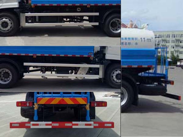 | 该车为用于道路的洒水降尘和绿化喷洒的专用作业车辆,装有罐体、洒水机构、操纵机构;罐体总容积11立方米,有效容积10.48立方米;运输介质:水,密度1000千克/立方米;罐体外形尺寸(长卓碜高)(mm)为4560?400?320;随底盘选装驾驶室外观、后处理装置、尿素罐外观;安装带卫星定位功能的行驶记录仪;ABS型号/生产厂家:3631010-C2000/东科克诺尔商用车制动系统(十堰)有限公司、ABS 8/东科克诺尔商用车制动系统(十堰)有限公司、4460046450/采埃孚商用车系统(青岛)有限公司、J ABS/焦作博瑞克控制技术有限公司;侧防护材质为铝合金,与车辆连接方式为螺栓连接,后防护材质为Q345B,与车辆连接方式为焊接,后防护断面尺寸/离地高:130?0/390(mm)。 |