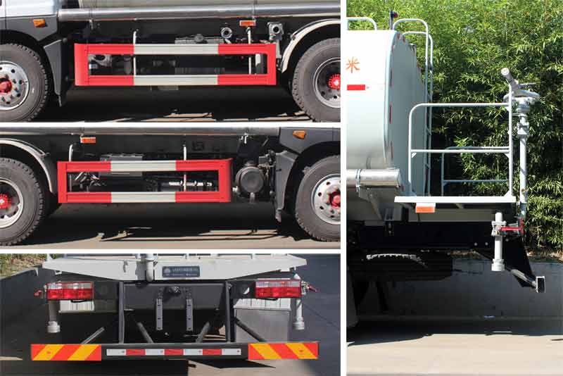 | 该车罐体总容积11.2立方米,罐体有效容积10.71立方米,罐体外形尺寸(长壮ぶ嶙短轴)(mm):4200?450?620。该车主要用于路面洒水。仅选用3950mm轴距,后轴仅选用非独立式钢板弹簧悬架。侧、后防护材料均为Q235B碳钢,左右侧面防护与副梁均采用螺栓连接,后下部防护与车架采用螺栓连接,后部防护断面尺寸(mm):120?5,后部防护离地高度(mm):480。选装前喷洒样式,选装中部对角冲喷洒装置,选装罐体后部箭头指示灯,选装后部两侧花洒,选装尾部喷洒横杆,选装雾炮机,选装雾炮机时高压水枪位置右置,选装高顶驾驶室,选装高顶驾驶室整车高度为3225mm,选装踏板反射器,选装行驶记录仪。ABS型号/生产企业:J ABS/焦作博瑞克控制技术有限公司,ABS/ASR-24V-4S/4M/襄阳东风隆诚机械有限责任公司。 |