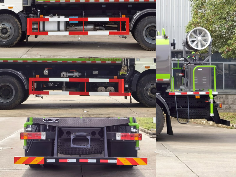 | 1、该车用于路面洒水及园林绿化,主要专用装置为喷洒总成.罐体总容量:10.8立方米,罐体有效容积:10.3立方米.罐体外形尺寸(长壮ぶ嶙短轴)(mm):4250?400?450.2、侧、后防护材料均为Q235,螺栓连接,后防护截面尺寸130?0mm,下边缘离地高435mm.3、随底盘选装前围和灯具,选装宽体保险杠脚踏板.ABS型号/厂家:CM4XL/长春瑞立科密汽车电子有限公司.仅选用轴距4500mm.整车外形尺寸长/前伸量对应关系为(mm):8640/650,7990/0.选装驾驶室前部无自动水炮,选装后部不带雾炮结构.随底盘装备限速装置,限速89km/h. |