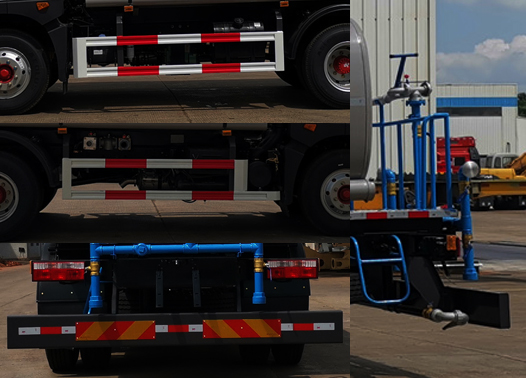 该车选用3950mm底盘轴距;该车装有水罐、水路系统、作业平台、控制系统,用于洒水、清洗等作业;罐体外形尺寸(长度壮ぶ嶙短轴)(mm):4180?400?420.罐体总容积10立方米,有效容积9.6立方米;侧面防护装置材料为Q235A,连接方式为螺栓连接,后防护装置材料为Q355B,连接方式为螺栓连接;后部防护装置的断面尺寸为240?5mm,离地高度为425mm;装配前自动水炮时,整车长8148mm,前悬1908mm;车前无自动水炮时,整车长7500mm,前悬1260mm;该车可选装前自动水炮,自吸加水口,对冲位置,气动切断阀,箭头灯,上/下喷雾,上浇灌,卷盘,选装罐体封头;随底盘选装驾驶室外观,随底盘选装燃油箱,电瓶,尿素罐,储气筒左右安装位置;随底盘装有ABS,ABS系统生产厂家,型号 :焦作博瑞克控制技术有限公司,J ABS;襄阳东风隆诚机械有限责任公司,ABS/ASR-24V-4S/4M.随底盘选装限速装置,限速89. |