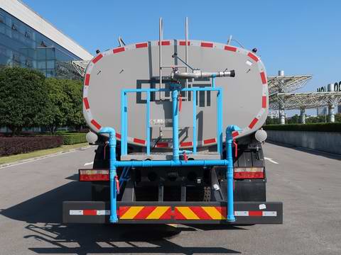 该车选用3950mm底盘轴距;该车装有水罐、水路系统、作业平台、控制系统,用于洒水,清洗作业;罐体外形尺寸(长轴锥讨嶙长度)(mm):2385?410?180;罐体总容积10立方米,有效容积9.6立方米;配置标配型时,整车长7425mm或8360mm,前伸0mm(基本型)或935mm(选装前置自动水炮),前悬/后悬:1260mm/2215mm,整车宽2420mm,整车高2895mm,接近角/离去角: 12?11 ?配置选配型时,整车长7520mm或7915mm,前悬/后悬:1355mm(基本型)或1750mm(选装前置自动水炮)/2215mm,整车宽2450mm或2500mm,整车高2960mm,接近角/离去角: 11?11 ?侧面防护装置材料为Q235A,连接方式为螺栓连接,后防护装置材料为Q345A,与车辆连接方式为螺栓连接;后部防护装置的断面尺寸为240?5mm,离地高度为430mm;该车可选装前自动水炮,对冲位置,气动阀,小型喷洒系统,自吸,上绿化浇灌,箭头灯,上/下喷雾,卷盘,罐体封头;随底盘选装驾驶室外观,随底盘选装燃油箱,电瓶,尿素罐,储气筒左右安装位置,随底盘装有ABS,ABS系统生产厂家,型号:焦作博瑞克控制技术有限公司,J ABS. |