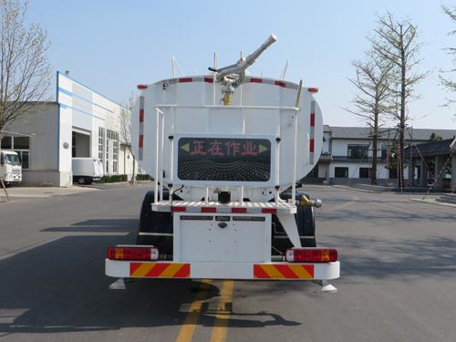 | 车辆主要专用装置为洒水装置、洒水泵、水罐体和水路系统,主要用于城镇环境清洁作业,对路面洒水降尘,园林绿化.罐体外形尺寸(长轴锥讨嶙罐长)(mm):2250?315?200,总容积:12.53立方米,有效容积:11.93立方米,介质名称:水,介质密度:1000千克/立方米.随底盘可不选装遮阳罩.选装前智能洒水装置,前伸为480mm,车辆长度为10290mm.选装箭头式作业指示灯.选装不同款式的车辆外部标识牌.选装后部圆形喷嘴.选装卷管总成.选装左右绿化浇灌装置.选装顶部绿化浇灌装置.选装不带作业指示灯牌.储能装置种类/生产企业:磷酸铁锂蓄电池/宁德时代新能源科技股份有限公司.技术阶段为"发展期".ABS系统控制器生产企业/型号为威伯科(上海)管理有限公司/4460046300.车辆侧面防护装置的材料材质为铝合金,连接方式为螺栓连接.后下部防护装置的材料材质为Q235钢,连接方式为焊接,断面尺寸(mm)为80?60,离地高度为460mm. |