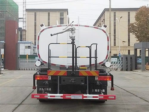 | 随底盘安装ABS系统,型号为CM4XL,生产企业为长春瑞立科密汽车电子有限公司;运载介质:水;密度:1000千克/立方米;罐体总容量为14.6立方米,罐体有效容积为13.9立方米,罐体长6250mm,长轴2300mm,短轴1400mm;侧防护及后下部防护装置均采用Q235A材质,侧防护采用螺栓与车架联接,后防护与车架后部采用焊接,后下部防护装置截面尺寸为高120mm,宽80mm,后下部防护装置离地高度为490mm;选装后部带指示标志;随底盘装前围和灯具,选装宽体保险杠脚踏板;选装中部对冲装置,选装后部洒水头外观,选装后部侧喷花洒结构,选装车辆前部中间花洒结构,选装后部罐体上端花洒结构;专用装置为罐体总成,自吸式洒水车泵,主要用于环卫绿化及道路除尘洒水;仅采用4350+1350mm轴距的底盘 |