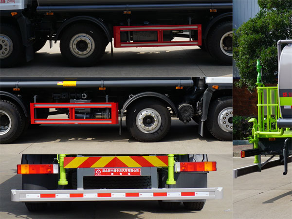 | 该车主要用于城乡园林绿化洒水;主要装置为水罐及洒水泵.罐体有效容积16.07立方米,罐体总容积16.87立方米.罐体外形尺寸(长壮ぶ嶙短轴)(mm):6000?350?700.当前部不带洒水装置时:外形长(mm)/轴距(mm)/前悬(mm)/后悬(mm)/前伸(mm)对应关系:9400/1900+3500/1410/2590/0,9900/1900+3500/1410/3090/0.当前部带洒水装置时:外形长(mm)/轴距(mm)/前悬(mm)/后悬(mm)/前伸(mm)对应关系:9900/1900+3500/1410/2590/500,10400/1900+3500/1410/3090/500.侧防护材料为Q235,连接方式为螺栓连接支架固焊在副车架大梁上.后防护材料为Q235,连接方式:用结构连接件固焊在主车后端,后部防护装置断面尺寸(宽赘?60?40(mm),后部防护离地高度:500(mm);装有具有卫星定位的行车记录仪.ABS型号及生产厂家为:3631010-C2000/东科克诺尔商用车制动系统(十堰)有限公司.选装后部结构及选装罐体侧部花洒样式.随底盘选装驾驶室. |
