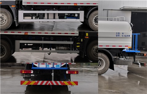 1.该车仅选用4500mm轴距;装运介质:水;密度:1000kg/m3;罐体有效容积:10.5立方米,罐体外形尺寸(mm)(长轴锥讨嶙直线段):2304?380?800(直线段),罐体总长4890mm;2.该车可选装前喷枪,此时车辆总长为8720mm,且具有前伸为660mm;该车并可选装后上喷雾,小卷盘;3.该车配置ABS,ABS系统型号/生产企业对应关系:ABS-E/威伯科汽车控制系统(中国)有限公司;ABS/ASR-24V-4S/4M/东科克诺尔商用车制动系统(十堰)有限公司;4.侧防材料:铝合金,连接方式:螺栓连接,后防材料:Q235-B,后防截面尺寸:160?0(mm),最大离地高度:480mm;5.该车可随底盘选装驾驶外观;6.该车型可选装ETC车载装置;该车配置水罐,水路喷洒水装置和控制系统,主要用于路面洒水降尘作业. |