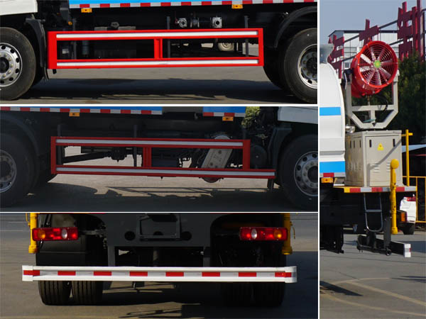 该车型是装配专用装置为喷洒装置,储液箱等,主要用于铁,道路,自卸车,城市广场,散装物料堆等各种场所除尘.运输介质为:水,密度:1000千克/立方米.罐体总容积10.8立方米,罐体有效容积10.3立方米.外形长(mm)/轴距(mm)/前悬(mm)/后悬(mm)/罐体外形尺寸(长壮ぶ嶙短轴)(mm)对应关系:7850/3950/1400(1430)/2500(2470)/4100?250?500,8400/4500/1400(1430)/2500(2470)/4700?250?500,8600/4700/1400(1430)/2500(2470)/4700?250?500.防护材料:Q235碳钢,连接方式:左右侧面及后下部防护均采用焊接连接,后部防护装置断面尺寸(宽赘?60?40(mm),后部防护离地高度(mm):480(mm).选装高度不同的驾驶室;选装前雾灯;选装驾驶室顶部装饰灯;选装驾驶室前面罩;选装前保险杠及前部灯具,选装后视镜;选装后部灯具;驾驶室前脸扰流罩为选装件;驾驶室卧铺侧窗选装装饰板.装有具有卫星定位的行车记录仪.ABS型号/生产厂家:3631010-C2000/东科克诺尔商用车制动系统(十堰)有限公司,ABS 8/东科克诺尔商用车制动系统(十堰)有限公司, 4460046450/威伯科汽车控制系统(中国)有限公司,J ABS/焦作博瑞克控制技术有限公司.仅采用3950(mm),4500(mm),4700(mm)轴距底盘.随底盘选装车辆左右侧尿素罐,电瓶,储气罐,排气管等装置安装位置. |