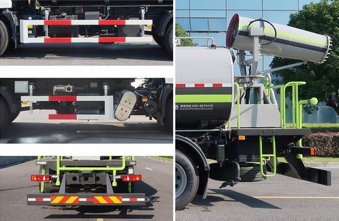 | 该车选用底盘4500mm轴距;该车专用装置为喷雾系统装置、储液箱、气控系统,主要用于道路、广场 或固定场所除霾降尘等作业;标配风炮配置时,后伸550mm,整车高3345mm;随底盘选装驾驶室外观,前悬为1430mm,整车长度为9090mm;前悬为1400mm,整车长度为9060mm;该配置下,选装前置自动水炮时,前伸780mm,前悬为1430mm或1400mm,整车长9870mm或9840mm;选装加大风炮配置时,后伸620mm,整车高3456mm;随底盘选装驾驶室外观,前悬为1430mm,整车长度为9160mm;前悬为1400mm,整车长度为9130mm;罐体外形尺寸(长轴锥讨嶙长度)(mm):2390?410?500.罐体有效容积10.27立方米;该车可选装前鸭嘴,后部洒水装置,自吸装置,防护结构外观及底盘后处理器外观;侧防护装置材料为Q235A,与车辆连接方式为螺栓连接;后防护装置材料为Q355B,与车辆连接方式为螺栓连接;后部防护装置的断面尺寸为240?5mm,离地高度为425mm;随底盘装有ABS,ABS型号/生产厂家:3631010-C2000/东科克诺尔商用车制动系统(十堰)有限公司,ABS 8/东科克诺尔商用车制动系统(十堰)有限公司, 4460046450/威伯科汽车控制系统(中国)有限公司,J ABS/焦作博瑞克控制技术有限公司. |