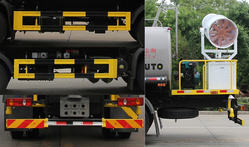 | 该车用途为抑尘降霾,主要装置为抑尘罐及喷雾装置.罐体有效容积8.73立方米,罐体尺寸长卓碜高(mm):4000?400?500.侧防护材料Q235B,侧防护螺栓加焊接连接,后防护材料Q235,后防护焊接连接,截面尺寸(mm):120?0,离地高(mm):420mm.ABS型号及生产厂家为:3631010-C2000/东科克诺尔商用车制动系统(十堰)有限公司,J ABS/焦作博瑞克控制技术有限公司.随底盘选装驾驶室,选装油箱,尿素罐,电瓶框布置位置,选装尾部管道样式,选装雾炮样式. |