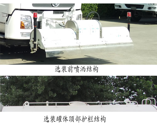 1、运输介质为:水,介质密度:1000千克/立方米.罐体有效容积9.9立方米,罐体外形尺寸(长壮ぶ嶙短轴)(mm):4500?300?400;2、该车采用4700轴距;3、防护装置所用材料材质为:Q235,侧、后下部防护装置连接方式均为螺栓连接,后下部防护装置的断面尺寸为(mm):140?0,离地高度为490mm;4、该车前伸为870mm;5、随底盘,ABS型号:3631010-C2000,4460046440;生产厂家:东科克诺尔商用车制动系统(十堰)有限公司,威伯科汽车控制系统(中国)有限公司;6、随底盘,驾驶室前脸扰流罩为选装件.选装前雾灯.选装卧铺侧窗装饰板;7、选装前喷洒结构;8、该车装备有罐体,水泵,管道系统等,用于清洗路面、对路面喷洒水降尘等作用;9、选装罐体顶部护栏结构. |
