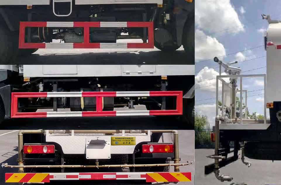 1.罐体有效容积:9.35立方米。2.罐体外形尺寸(长壮ぶ嶙短轴)(mm): 3400?300?600。3.整车长度9000mm含前伸1080mm,仅采用4500mm轴距。4.侧,后防护装置材料材质:Q235,侧防护螺栓连接,后防护螺栓连接,后部防护装置断面尺寸(宽赘?50?00(mm),后部防护离地高度:490mm。5.ABS型号为3631010-C2000,生产厂家为东科克诺尔商用车制动系统(十堰)有限公司。6.该车装备有罐体、水泵、管道等系统,用于清洗路面,对路面喷洒水降尘等作用。 |