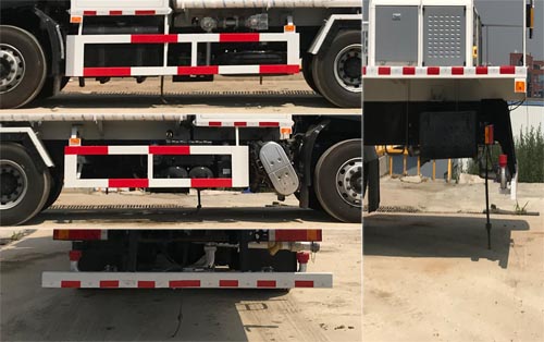 该车装备罐体、喷雾系统等专用装置,主要用于除霾降尘,改善空气质量.该车可选装喷雾机配置类型:A型、B型,配置的整车长度mm/高度mm/后悬mm/后伸mm/整备质量kg/额定载质量kg对应如下:配置A:11185/3875/3340/645/15700/9170;配置B:10600/3855/3125/275/14700/10170;配置A型时罐体有效容积:12立方米,罐体外形尺寸(长卓碜高)(mm):3600x2500x1700,配置B型时罐体有效容积:13.3立方米,罐体外形尺寸(长卓碜高)(mm):3800x2500x1700.侧和后防护装置材料Q235,连接方式:螺栓,后防护装置尺寸(mm):120?0;离地高:470mm.ABS型号/生产厂家:3631010-C2000/东科克诺尔商用车制动系统(十堰)有限公司,ABS 8/东科克诺尔商用车制动系统(十堰)有限公司,4460046450/采埃孚商用车系统(青岛)有限公司.选用底盘4350+1350mm轴距.随底盘选装驾驶室前面罩;驾驶室前角扰流板为选装件;选装驾驶室前面罩、前保险杠及前部灯具和后视镜,驾驶室顶部中间三个装饰灯为选装件,前雾灯为选装件,驾驶室侧窗选装树脂装饰板.驾驶室前风窗上部扶手为选装件.选装后部灯具和号牌板.选装前面罩装饰胶条.选装进气引入管右置.选装自动变速箱时仅选装D6.7NS6B290发动机. |