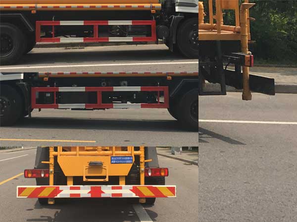 介质:水,密度:1.0吨/立方米,有效容积:8.4立方米,,罐体外形尺寸(长壮ぶ嶙短轴)(mm):5150?890?290.采用4700轴距底盘,前伸860mm.侧防护和后防护材料均为Q235B,侧防护连接方式为螺栓连接,后防护连接方式为焊接连接,后部防护装置断面尺寸(宽赘?50?80(mm),后部防护离地高度:500(mm); ABS型号:3631010-C2000,4460046440;生产厂家:东科克诺尔商用车制动系统(十堰)有限公司,威伯科汽车控制系统(中国)有限公司;该车专用装置主要由罐体、水泵、隧道清洗装置组成,主要用于隧道清洗作业. |