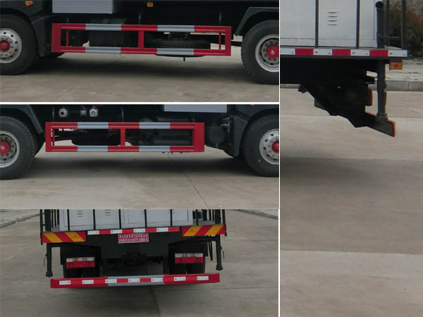 | 侧防护采用冷弯型钢/Q235,螺栓连接。后防护采用冷弯型钢/Q235,焊接连接。后防护截面高度尺寸120mm,截面宽度尺寸50mm,下边缘离地高度400mm。ABS系统生产厂家,型号 :焦作博瑞克控制技术有限公司,J ABS。该车用途为抑尘降霾,主要装置为水罐及喷雾装置。采用4500mm,4700mm轴距底盘,车辆长与轴距一一对应。额定载质量和整备质量及驾驶室准乘人数一一对应。选装车辆左右两侧附件安装位置,罐体总容量10.37立方米,罐体有效容积9.88立方米,罐体尺寸:3200/3400?450?650.选装后尾部大喷雾机样式,选装车辆左右侧附件样式。 |