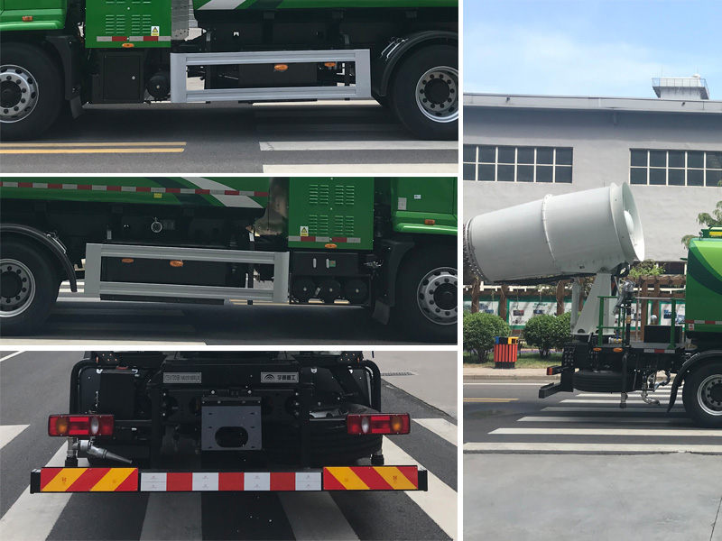 | 1、该车型罐体总容量为8.7立方米,有效容积为8.33立方米,罐体外形尺寸(长壮ぶ嶙短轴)为3400?440?660(mm);2、储能装置种类为磷酸铁锂蓄电池,储能装置单体生产企业为宁德时代新能源科技股份有限公司,储能装置总成生产企业为郑州深澜动力科技有限公司;3、该车可在全国销售;4、侧防护装置材料为Q355,与车架采用螺栓连接,后防护装置材料为QStE700TM,与车架采用螺栓连接,截面尺寸为:120?0(mm),离地高度为:470mm;5、ABS型号:ABS-E 4S/4M;ABS生产企业:采埃孚商用车系统(青岛)有限公司;6、随底盘安装有限速装置;限速装置限速(km/h):90;7、随底盘选装驾驶室不同外观遮阳罩、前面罩、后视镜、后视镜底座、侧围造型;8、该车可选装:不同外观后洒水炮及管路接头、360环视系统、不同状态护栏、右上侧喷、不同状态爬梯、不同外观雾炮、箭头灯、液压油箱不同外观、整车右侧不带舱体;可取消:前鸭嘴、后洒、对冲、后洒水炮、后箭头灯、加压取水口、左后上侧喷、工具箱;9、该车装有雾炮喷洒专用装置,后置雾炮总成可左右回转,上下俯仰动作,用于道路,矿场,露天堆厂及爆破现场等的喷雾抑尘;10、该车后伸尺寸为1580mm;11、整备质量(kg)/额定载质量(kg)对应关系:11200/6670,11100/6770;12、当装配前鸭嘴时接近角为12(?。 |