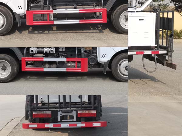 | 侧/后防护材料为Q235,侧防护采用螺栓连接,后防护采用焊接连接,后防护截面尺寸100?0mm,下边缘离地高400mm。ABS型号/厂家:APG3550500A/浙江亚太机电股份有限公司,:襄阳东风隆诚机械有限责任公司/ABS/ASR-12V-4S/4M。该车用途为抑尘降霾,主要装置为水罐及喷雾装置。选装外观样式及后平台样式。选装外观样式。 |