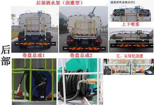 该车选用4500mm轴距底盘,标配时整备质量7700kg,额定载质量:10105kg,罐体外形尺寸(长轴锥讨嶙长度)(mm):2400?420?600,罐体有效容积10.6立方米,整车长:8095mm,接近角12?选装前置自动水炮时:整备质量7960kg,额定载质量:9845kg,罐体外形尺寸(长轴锥讨嶙长度)(mm):2395?415?600,罐体有效容积:10.34立方米,前伸:865mm,整车长:8960mm,接近角12?选装前清洗喷水架时:整备质量7960kg,额定载质量:9845kg,罐体外形尺寸(长轴锥讨嶙长度)(mm):2395?415?600,罐体有效容积:10.34立方米,前伸:865mm,整车长:8960mm,接近角:6?选装护栏清洗装置时:整备质量8140kg,额定载质量:9665kg,罐体外形尺寸(长轴锥讨嶙长度)(mm):2390?420?580,罐体有效容积:10.15立方米,前伸:1795mm,整车长:9890mm,接近角6?还可选装鸭嘴、对冲、上下喷雾、上绿化浇灌、左右绿化浇灌、自吸、卷盘、小型喷洒系统、高压清洗系统、中部液压油箱等装置,该系列选装对于整车尺寸、重量变化可忽略不计,侧面防护装置材质为铝合金,连接方式为螺栓连接;后防护装置材料为Q235A,连接方式为螺栓连接.后防护装置截面尺寸为240mm?0mm,离地高度为495mm;随底盘选装驾驶室外观.随底盘装ABS.ABS型号:3631010-C2000,4460046440;生产厂家:东科克诺尔商用车制动系统(十堰)有限公司,威伯科汽车控制系统(中国)有限公司. |