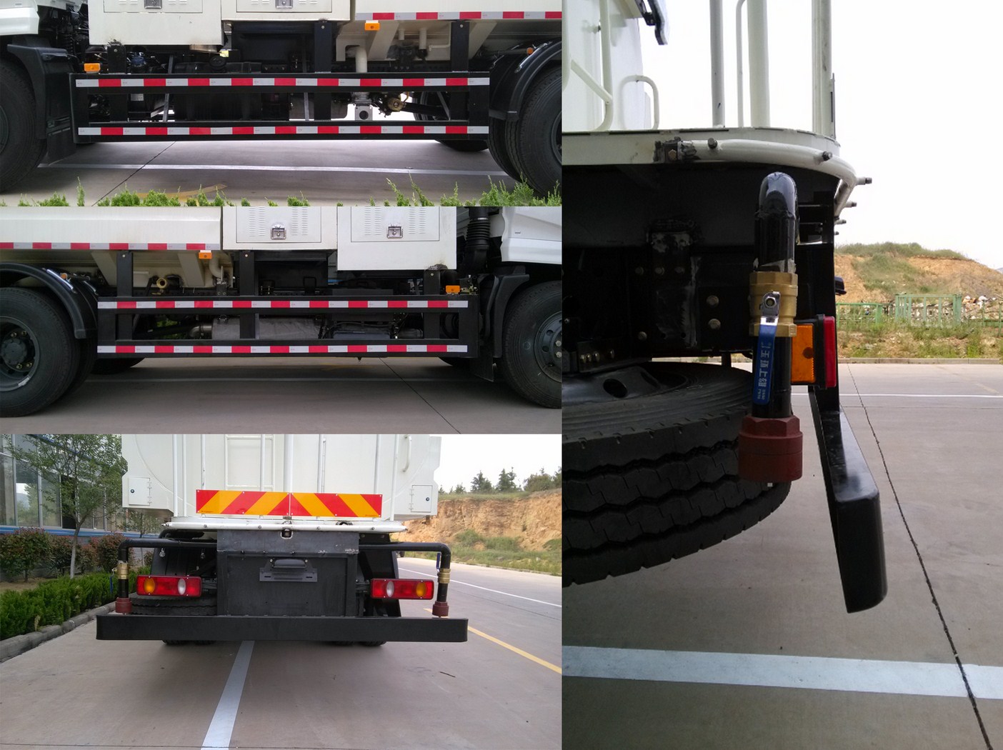 整车长9230mm包括1050m前伸.介质名称:水;介质密度:1000kg/m3.罐体外形宽赘?mm)2300?500;罐体长度为3100mm;罐体有效容积为7.5立方米.侧防护栏材质为Q235A,连接方式螺栓连接;后防护栏材质为Q235A,连接方式螺栓连接,横截面形状为矩形,截面尺寸为100mm?50mm,离地高度490mm;安装带有卫星定位功能的行驶记录仪.该车装有ABS,ABS型号:3631010-C2000,生产厂家:东风电子科技股份有限公司制动系统公司.选装风格不同功能相同的后洒. |