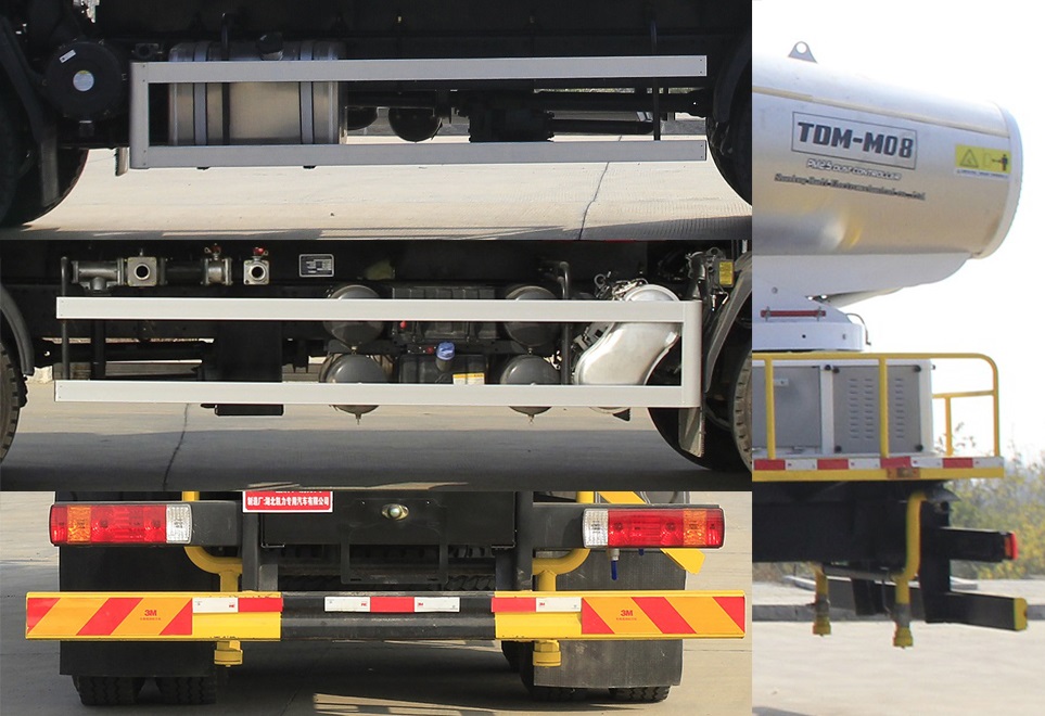 该车用途为抑尘降霾,主要装置为抑尘罐及喷雾装置。罐体总容量12.83立方米,罐体有效容积12.22立方米,罐体尺寸长卓碜高(mm):4750(下边长),3800(上边长)?500?700.侧防护材料铝合金,侧防护螺栓连接,后防护材料Q235B,后防护焊接连接,截面尺寸(mm):150?0,离地高(mm):500mm.ABS型号/企业:ABS-E 4S/4M/采埃孚商用车系统(青岛)有限公司,ABS 8/东科克诺尔商用车制动系统(十堰)有限公司,CM4XL-4S/4M/广州瑞立科密汽车电子股份有限公司.仅选用4500+1350mm轴距改装.随底盘选装驾驶室,选装雾炮样式.整车尺寸/前悬/后悬/后伸对应关系(mm):10830/1445/3055/480,10910/1525/3055/480,10350/1445/3055/0,10430/1525/3055/0. |