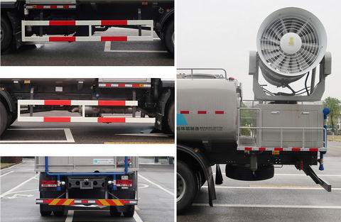 该车选用底盘4500mm轴距,专用装置为喷雾系统装置、储液箱,气控系统,主要用于道路,广场或固定场所除霾降尘等作业;罐体外形尺寸(长轴锥讨嶙长度)(mm):2300?260?600.罐体有效容积9.1立方米;侧防护装置为Q235A,连接方式为螺栓连接;后防护装置材料为Q355B,与车辆连接方式为螺栓连接;后部防护装置的断面尺寸为120?0mm,离地高度为470mm;选装工作台栏杆,随底盘装有ABS,ABS型号为CM4XL-4S/4M,生产厂家为广州瑞立科密汽车电子股份有限公司.随底盘选装驾驶室外观格栅和LOGO. |