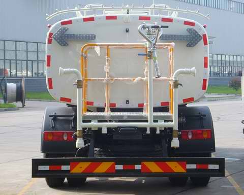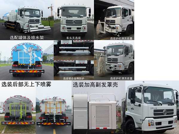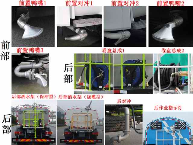 该车采用4500mm轴距底盘.标配罐体外形尺寸(长轴锥讨嶙长度)(mm):2246?296?600.罐体有效容积8.06立方米.选配罐体外形尺寸(长轴锥讨嶙长度)(mm):2306?430?010.罐体有效容积7.08立方米,介质名称:水,介质密度:1000千克/立方米.该车型工作装置有4种配置:A(装喷水架)、B(装椭圆水罐+工具箱)、C(装非标准椭圆水罐)、D(车前无工作装置).配置B+(A或D)时,整备质量8900kg,对应准乘人数为2,载质量6770kg,总长9120mm或8160mm,前悬1430mm,前伸960mm或0,后悬2230mm,接近角/离去角10/13?高3050mm或2860mm(选装加高罩壳时);配置C+(A或D)时,整备质量7900kg,对应准乘人数为3,载质量为7705kg,总长9000mm或8090mm,前悬1430mm,前伸910mm或0,后悬2160mm,接近角/离去角8/13盎?5/13?高2860mm.侧面防护装置材料为Q235或铝合金,连接方式为螺栓联接.后部防护装置材料为Q235,连接方式为螺栓联接,断面尺寸为60?40mm,离地高度为460mm或495mm.可选装鸭嘴、对冲、后部保洁型、后部浇灌型、上绿化浇灌、自吸、卷盘、后作业指示灯、后部无上下喷雾、打药系统、高压清洗系统等装置,该系列选装对于整车尺寸、重量变化可忽略不计.随底盘选装驾驶室外观,随底盘装配ABS;ABS型号/企业:3631010-C2000,4460046440/东科克诺尔商用车制动系统(十堰)有限公司,威伯科汽车控制系统(中国)有限公司. |