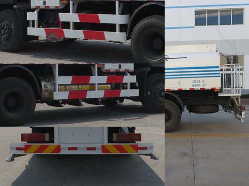 该车辆仅选用轴距为4350+1300mm的底盘.ABS型号:ABS-E 4S/4M,生产厂家为威伯科汽车控制系统(中国)有限公司.罐体外形尺寸(长轴锥讨嶙罐长) :2180?350?500(mm),有效容积12立方米.介质名称:水,介质密度:1000千克/立方米.随底盘选装驾驶室.选装气柜.选装车前无冲洗装置.该车型工作装置有2种配置:A(车前有冲洗装置)、B(车前无冲洗装置).配置情况:A:长10720mm,前悬2390mm,接近角13?B:长9790mm,前悬1460mm,接近角30?车辆侧面防护装置及后下部防护装置的材料材质均为Q235钢,连接方式均为螺栓连接,后下部防护装置断面尺寸(mm)为175?5,其最大离地高度为515mm. |
