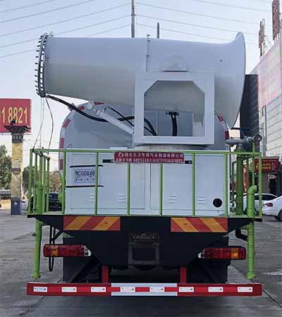 | 专用装置为抑尘雾炮,用于城市抑尘.整车长/轴距/前悬/后悬对应关系为(mm):10630/4350+1350/1440/3490;10630/4750+1350/1440/3090;11880/5400+1350/1440/3690;11880/5700+1350/1440/3390;11880/5900+1350/1440/3190;防护材料:Q235A碳钢,连接方式:左右侧面采用焊接连接,后下部防护采用焊接连接,后部防护断面尺寸(mm):120?0,后部防护离地高度(mm):490.ABS型号/生成厂家:3631010-C2000/东科克诺尔商用车制动系统(十堰)有限公司;选装雾炮型号:WF-60/WF-80所对应的整备质量分别为:12300kg/13250kg.随底盘选装驾驶室.选装后平台样式,外观样式,左右出水口及底盘附件位置. |