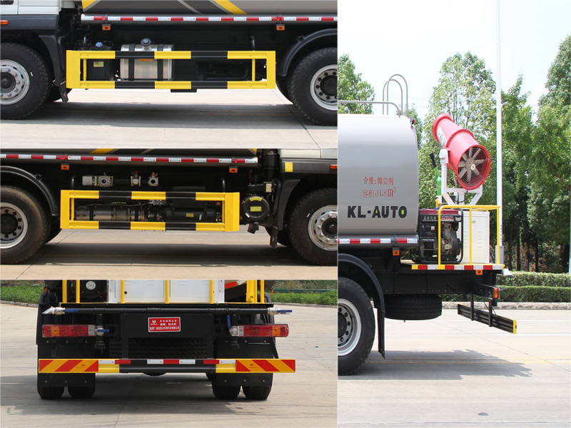 1.该车用途为抑尘降霾,主要装置为抑尘罐及喷雾装置。罐体总容量11.8立方米,罐体有效容积11.24立方米,罐体尺寸长卓碜高(mm):4200?400?700,2.侧/后防护材料Q235B,侧防护螺栓连接,后防护焊接,截面尺寸(mm):150?0,离地高(mm):450mm.;ABS型号:CM4XL-4S/4M;ABS生产企业:广州瑞立科密汽车电子股份有限公司;选装驾驶室前脸LOGO,选装后部变化外观结构,仅采用3950轴距改装 |