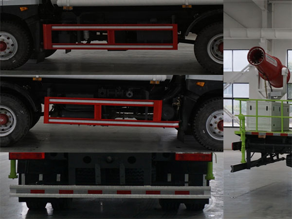 专用功能及装置:该车用途为抑尘降霾.主要装置为金属罐体及抑尘装置;罐体总容积:10.7立方米,罐体有效容积:10.22立方米.罐体外形尺寸(长壮ぶ嶙短轴)(mm):3700?350?650.侧防护材料为Q235,连接方式为螺栓连接支架固焊在副车架大梁上.后防护材料为Q235,连接方式:用结构连接件固焊在主车后端,后部防护装置断面尺寸(宽赘?50?40(mm),后部防护离地高度:500(mm).选装侧部结构.选装后部抑尘装置样式.选装罐体后侧部花洒样式.选装限速装置,限速89.ABS系统生产厂家,型号 :焦作博瑞克控制技术有限公司,J ABS;襄阳东风隆诚机械有限责任公司,ABS/ASR-24V-4S/4M.采用3950(mm)轴距底盘. |