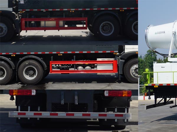 | 专用功能及装置:该车用途为抑尘降霾.主要装置为金属箱体及抑尘装置;侧防护材料为Q235,连接方式为螺栓结构连接支架固焊在副车架大梁上.后防护材料为Q235,连接方式:用结构连接件固焊在主车后端,后部防护装置断面尺寸(宽赘?50?40(mm),后部防护离地高度:500(mm);后伸尺寸:350.对应外形长(mm)为:10350.罐体总容积:14.44立方米,罐体有效容积:13.75立方米;罐体外形尺寸(长壮ぶ嶙短轴)(mm):4100?500?950;采用4300+1350(mm)轴距底盘;ABS系统控制器生产企业/型号为威伯科(上海)管理有限公司/4460046300;选装EBS,EBS系统控制器生产企业/型号为威伯科(上海)管理有限公司/EBS3;安装带卫星定位功能的行驶记录仪;选装ETC车载装置.选装限速装置;限速装置限速(km/h):89.选装后部风机样式.随底盘选装驾驶室. |
