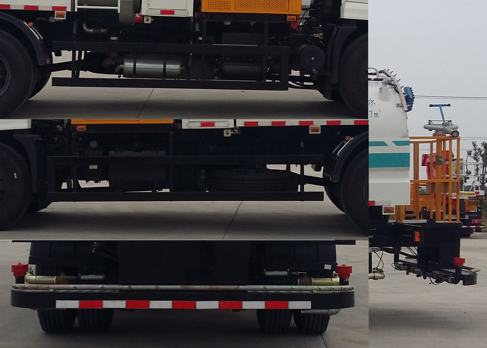 随底盘选装前脸扰流罩和前雾灯。选装前护栏清洗装置。选用4500轴距。罐体有效容积7立方米,罐体外形尺寸(长轴锥讨嶙长度)(mm):2300?426?000.介质名称:水.密度:1000千克/立方米。配装喷水架时的长度为8930mm,前伸900mm;选装前护栏清洗时长度为9080mm,前伸1050mm。侧防护与后防护装置采用的材料为:Q235B,侧防护为螺栓连接,后防护焊接;后防护装置截面尺寸为160?0mm,离地高度为420mm。安装具有卫星定位功能的行驶记录仪。随底盘安装的ABS生产厂家/型号:东科克诺尔商用车制动系统(十堰)有限公司/3631010-C2000,威伯科汽车控制系统(中国)有限公司/4460046440。 |