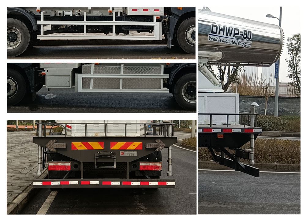 | 1.该车选用底盘5000mm轴距;2.该车装有水罐、水路系统、喷雾抑尘工作装置、后作业平台、控制系统等,用于抑尘作业;3.罐体外形尺寸(长轴锥讨嶙长度)(mm): 2280?340?500,罐体有效容积7.53立方米;4.该车可选装不同样式的雾炮装置,选装A样式雾炮时长度/高度/后伸量(mm):9940/3700/960,选装B样式雾炮时长度/高度/后伸量(mm):9600/3620/620;5.侧防护装置的材质为Q235,连接方式为螺栓连接;后部防护装置的材料为Q235,连接方式为螺栓连接,断面尺寸为150mm?0mm,离地高度为485mm;6.装备具有卫星定位功能的行驶记录仪;7.储能装置种类/生产企业:磷酸铁锂蓄电池/湖北亿纬动力有限公司;8.电机的额定/峰值功率分别为:120kW/180kW;9.ABS型号:CM4XL-4S/4M,生产厂家为:广州瑞立科密汽车电子股份有限公司.9.该车可选装不同样式的前鸭嘴,选装不同的箭头指示样式,可选装不同外型的上绿化喷洒装置.可选装不同外型的电池罩. |
