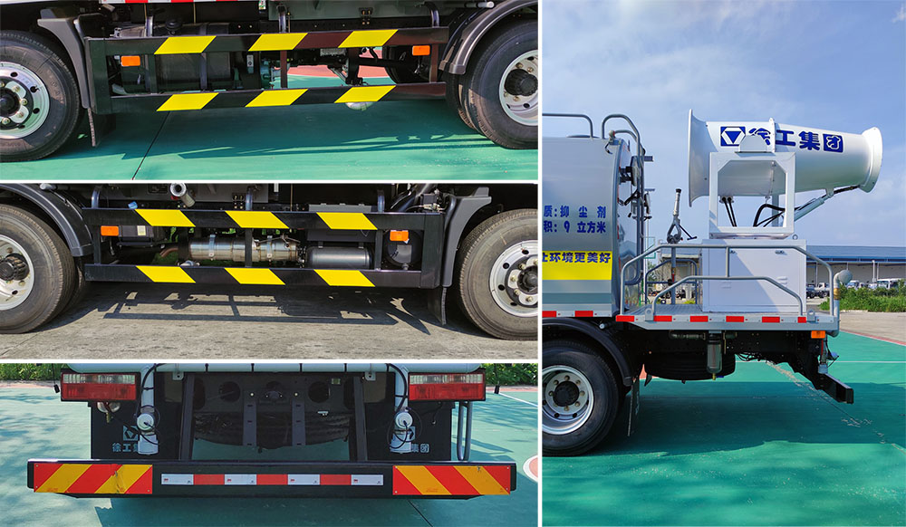 | 该车主要装置为抑尘雾炮、储液箱等,用于城市或固定场所除霾降尘.仅选用3950mm轴距.随底盘选装驾驶室;罐体有效容积为9立方米,装载介质为抑尘剂,密度为900千克/立方米,罐体尺寸(长轴锥讨嶙长度)(mm):2440?750?510.选装A雾炮时,整车长度(mm)/高度(mm)/整备质量(kg)/后伸(mm)为:8450/3335/7880/520;选装B雾炮时,整车长度(mm)/高度(mm)/整备质量(kg)/后伸(mm)为:8435/3023/7765/505;选装C雾炮时,整车长度(mm)/高度(mm)/整备质量(kg)/后伸(mm)为:8730/3170/7880/800;侧防护装置材质为Q355B,连接方式为螺栓连接;后防护装置材质为Q355B,连接方式为螺栓连接,截面尺寸为180?0mm,离地高度415mm;ABS型号:ABS/ASR-24V-4S/4M,厂家:襄阳东风隆诚机械有限责任公司. |