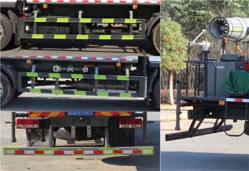 | 选装喷雾装置样式。该车用途为抑尘降霾.主要装置为罐体及喷雾装置;随底盘选装驾驶室;罐体有效容积:14立方米,罐体外形尺寸(长壮ぶ嶙短轴)(mm):4800?400?530,4800?300?300,ABS型号为CM4XL-4S/4M,生产厂家为广州瑞立科密汽车电子股份有限公司,侧、后防护材料均为:Q235碳钢,连接方式均为:螺栓连接,后部防护截面尺寸(mm):120?0,后部防护离地高度(mm):480. |