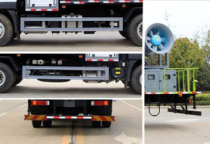 | 专用装置为抑尘雾炮,用于城市抑尘.整车长/轴距/后悬对应关系为(mm):8970/5500/2200;8650/4500/2880;防护材料:Q235B碳钢,连接方式:左右侧面采用焊接连接,后下部防护采用焊接连接,后部防护断面尺寸(mm):150?0,后部防护离地高度(mm):500.ABS系统型号/生产企业对应关系:ABS-E/威伯科汽车控制系统(中国)有限公司;ABS/ASR-24V-4S/4M/东科克诺尔商用车制动系统(十堰)有限公司.根据市场需求,扩展驾驶室。 |