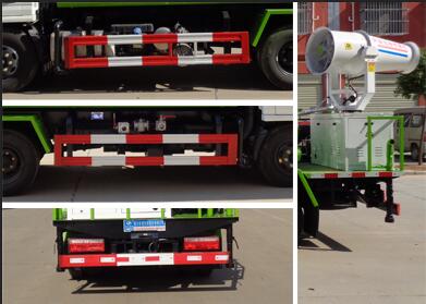 | 专用装置为抑尘雾炮,用于城市抑尘.整车长/轴距/后悬对应关系为(mm):5995/3360/1482;5485/2850/1482;防护材料:Q235B碳钢,连接方式:后下部防护及左右防护均采用焊接连接,后部防护断面尺寸(mm):120?0,后部防护离地高度(mm):420.ABS系统控制器型号/厂家:CM4XL-4S/4M/广州瑞立科密汽车电子股份有限公司.D20TCIF1最大净功率88kW.随底盘选装驾驶室,选装喷雾机组及不同外观样式. |