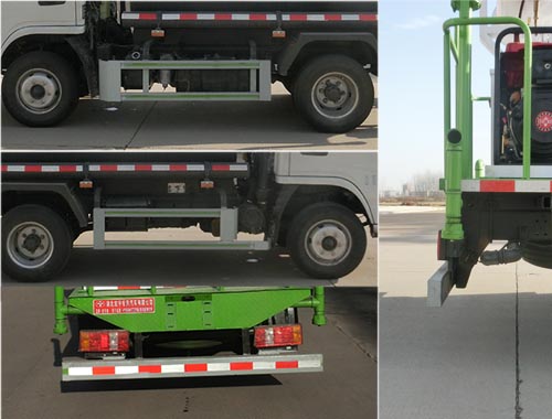 随底盘选装驾驶室;选装水箱外包围;选装后部水炮结构样式。侧防护采用冷弯型钢/Q235-B,螺栓连接,后防护采用Q235-B,螺栓连接,后防护截面高度尺寸100mm, 截面宽度尺寸50mm,下边缘离地高度350mm。ABS型号:CM4YK,ABS生产企业:广州瑞立科密汽车电子股份有限公司。该车主要用于城市街道的喷雾抑尘,主要专用装置为喷雾总成。 |