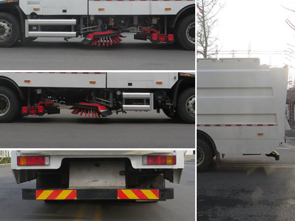 | 车辆主要专用装置由动力装置、清扫系统、抽吸系统组合而成.用于城市道路,高速公路,机场,码头,广场,隧道,桥梁等路面的机械化清扫,洗扫,喷雾降尘等保洁作业.后部装有作业指示灯,该灯为作业所需灯具,仅在驻车作业时候使用.随底盘选装限速装置,限速89.选装外形尺寸不同的驾驶室.选装尿素罐样式.选装不同结构的车门裙板.选装无车门裙板.选装空滤进气引起管外观.选装踏步结构.选装驾驶室卧铺侧窗装饰板.选装前雾灯.选装前下视镜.选装与车身颜色相同的前保险杠.驾驶室前脸扰流罩为选装件.选装驾驶室顶部装饰灯.选装后视镜.选装驾驶室前面罩.选装前保险杠及前部灯具.选装带防滑材料的脚踏板.选装后部灯具.选装密封卸料装置.选装新式扫刷抽吸罩.选装新式吸盘.选装新式箱体.仅选用5300mm轴距.外形尺寸长(mm)/前悬(mm)/后悬(mm)对应关系为:9570/1400/2870,9600/1430/2870,9600/1455/2845.ABS型号/生产厂家:3631010-C2000/东科克诺尔商用车制动系统(十堰)有限公司,ABS 8/东科克诺尔商用车制动系统(十堰)有限公司,ABS-E 4S/4M/采埃孚商用车系统(青岛)有限公司,J ABS/焦作博瑞克控制技术有限公司.车辆侧面防护装置的材料材质为铝合金,连接方式为螺栓连接.后下部防护装置的材料材质为Q235钢,连接方式为焊接,断面尺寸(mm)为80?60,最大离地高度为380mm. |