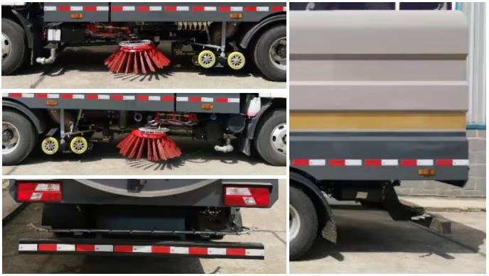 1.该车装有箱体和清扫装置、冲洗水路系统,对路面进行清扫作业;2.标配时整备质量7160kg,对应额定载质量855kg;选配不带洒水水泵、低压冲洗水路时整备质量6950kg,对应额定载质量1065kg;3.侧面防护装置由工作装置替代;后防护装置的材料材质为Q235,连接方式为焊接连接;后部防护装置的断面尺寸为120?0mm,离地高度为300mm;4.随底盘装有ABS,ABS系统型号:VIE ABS-II,ABS系统生产厂家:浙江万安科技股份有限公司.5选装前脸造型,前照灯,取消前雾灯。6选装ETC车载装置 |