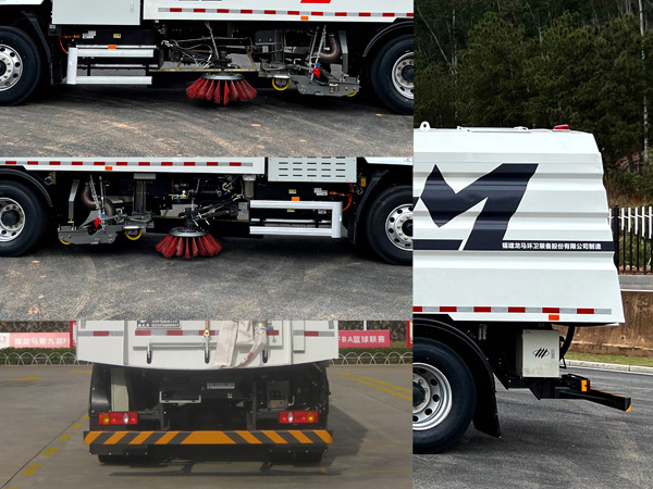 可外接充电,该车型有两种配置:配置A(标准配置),配置B(选装另外一种上装),各配置整备质量(kg)/载质量(kg)对应关系如下:配置A:11465/6340;配置B:11750/6055;侧防护装置材料为铝合金,后防护装置材料为Q235A,连接方式均为螺栓连接;后部防护装置的断面尺寸为120?0mm,离地高度为400mm;随底盘选装前面板字样、电池罩;电池种类/生产企业:磷酸铁锂电池/宁德时代新能源科技股份有限公司;电机种类/电机型号/电机生产企业/电机控制器型号/电机控制器生产企业/电机额定功率/电机峰值功率:永磁同步电机/TZ342XSSFY02/陕西法士特齿轮有限责任公司/KTZ54X46S-GVD55051/深圳市英威腾电动汽车驱动技术有限公司/110kW/180kW;燃料电池类型/生产企业:质子交换膜燃料电池/广东清能新能源技术有限公司。ABS型号/企业:ABS-E 4S/4M/威伯科汽车控制系统(中国)有限公司,CM4XL-4S/4M/广州瑞立科密汽车电子股份有限公司;该车通过清扫机构,采用吸扫结合的工作原理对路面进行清扫作业。 |