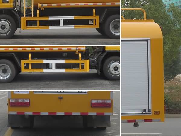 | 随底盘选装驾驶室,随底盘选装燃油箱,电瓶,尿素罐,储气筒安装位置,仅采用3800mm轴距,罐体总容量:7.29立方米,罐体有效容积:6.95立方米,罐体外形尺寸(长壮ぶ嶙短轴)(mm)为:3500?000?300;主要装置为水罐,洒水泵等,主要用于路面喷洒,除尘和降温;ABS型号:ABS/ASR-24V-4S/4M,厂家:襄阳东风隆诚机械有限责任公司;侧面防护装置材料材质:Q235,连接方式:焊接;后下部防护为整体式结构,离地高度:470mm. |